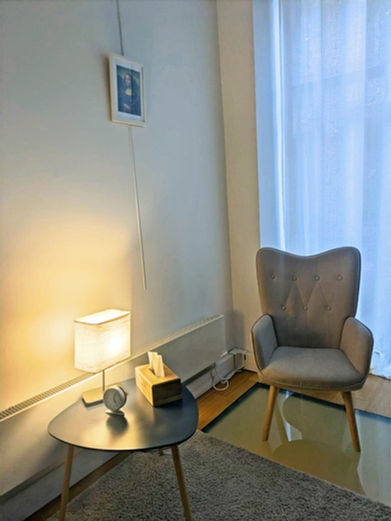Ce lieu, conçu en collaboration avec Marie Gambart, a été imaginé comme un espace chaleureux et sécurisant, en rupture avec l’austérité des cabinets traditionnels. Ici, l’écoute et le bien-être sont au centre de la démarche. J’y consulte du mercredi au vendredi de 12h à 20h.